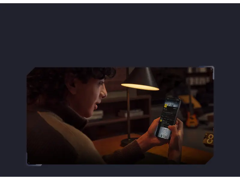 ベゼル(縁)がほとんどない1.5Kの美しい大画面と、屋外でもくっきり見える3,500nitsの明るさは、YouTubeやNetflixの視聴体験を一段上のものにします。
